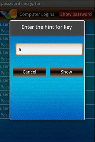 PASSWORDS is an Android Application that lets you save all your User Names and Passwords in an ENCRYPTED manner based on a KEY entered by yourself :) :)