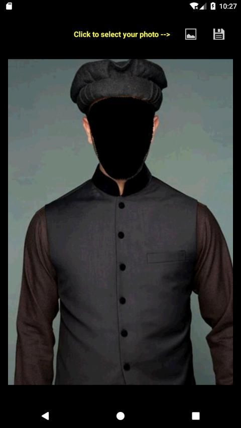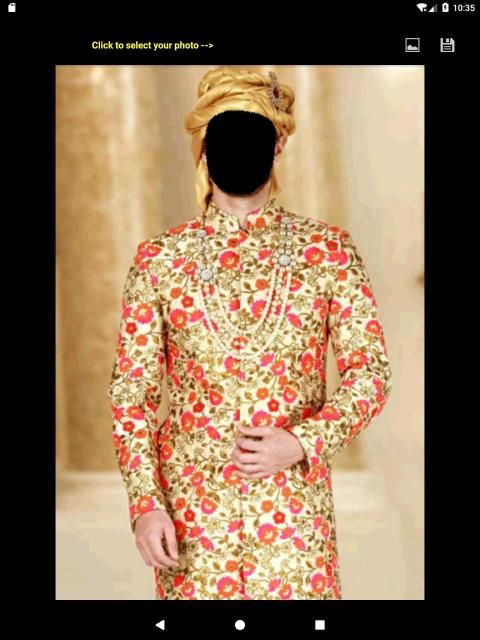 Select a Pathani Suit, select your photo from gallery, adjust your face and save. Done!