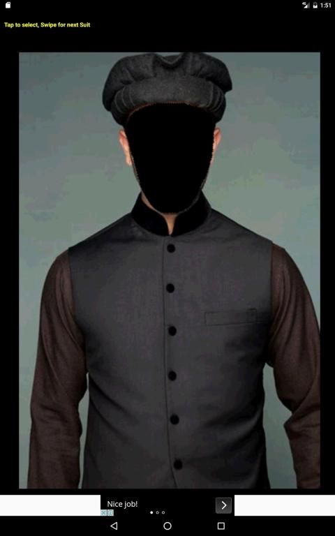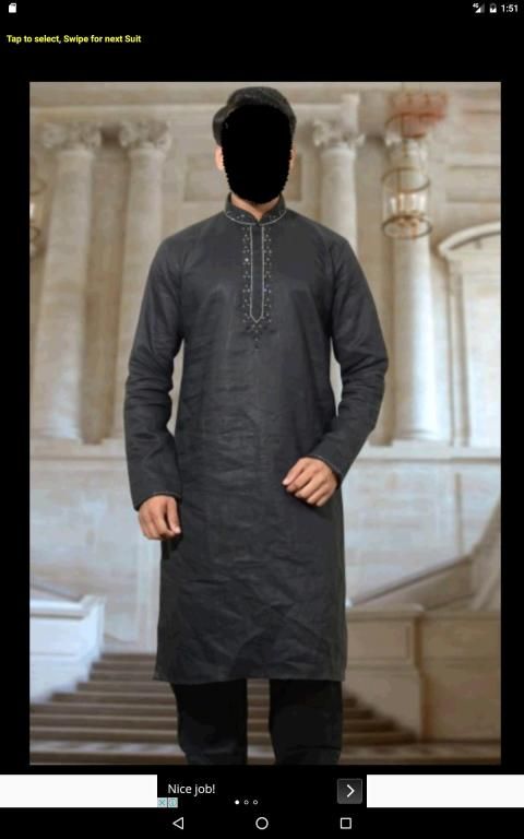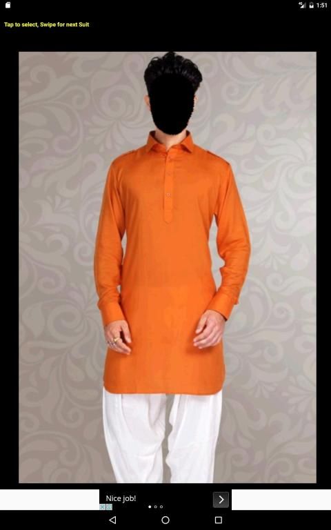 Ever dreamed of wearing a Pathani Suit ? Ever wondered how will you look in Pathani Suit ? Then this App is for you.