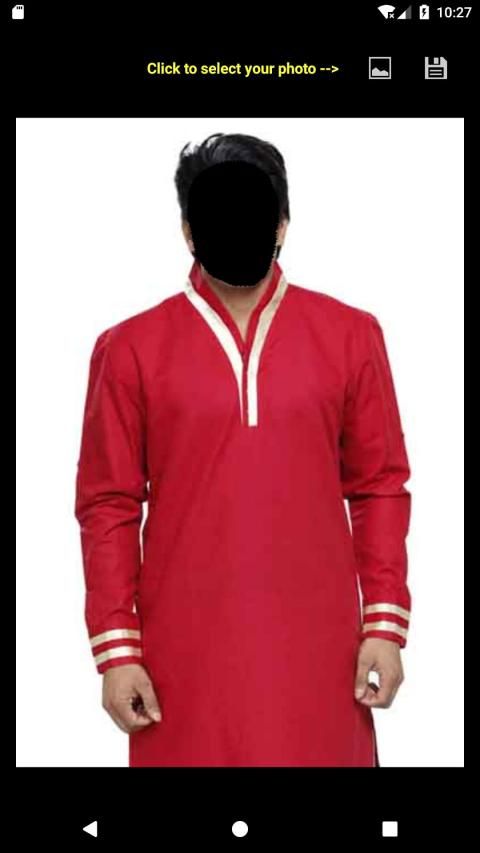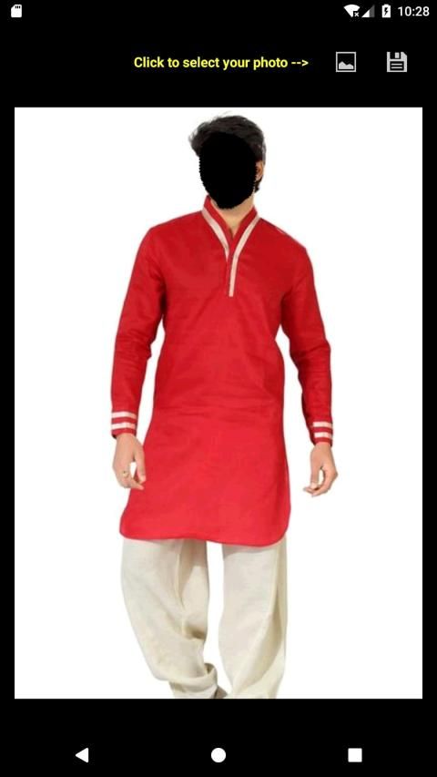 This application has many Pathani Suit images for you to try, every time you start the application Pathani Suits are shuffled, even some hidden Pathani Suits are displayed, more you use the app more Pathani Suits you will find. Once you select your photo, App remembers it for next Pathani Suit.