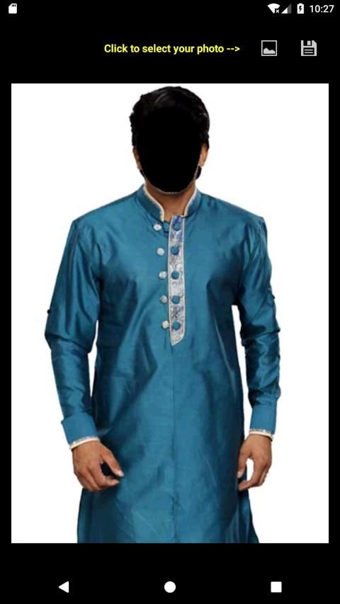 एक पठानी सूट का चयन, गैलरी से अपनी तस्वीर का चयन करें, अपने चेहरे को समायोजित करने और बचाने के लिए। किया हुआ!