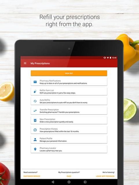 - अपने फोन या टेबलेट से सीधे अपने वेतन कम फार्मेसी नुस्खे फिर से भरना। बस अपने पर्चे नंबर टाइप कर अपने फार्मेसी का चयन करें और एक सुविधाजनक पिक समय निर्धारित।