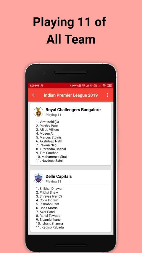 • Algorithm based smart best teams • App users can also suggest their Best 11, Playing 11 & Probable 11 team.
