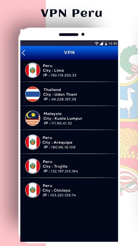 which connects you to the fastest servers with easy clicks. Application with not only Peru servers but it also provides many more countries to easily connect with VPN. App with you can connect you have free access to all the blocked pages and websites which are restricted in your area. it provides you to full security regarding your IP address.