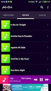 Phil Collins Greatest Hits Songs. Inside this app you will find the complete Phil Collins Songs, such asIn the Air Tonight, In the Air Tonight, Against All Odds, and many more. Here are some features of the Phil Collins song collection app: