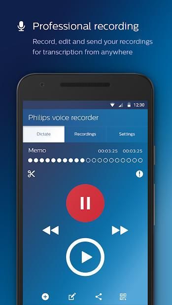 फिलिप्स वॉयस रिकॉर्डर एप्लिकेशन प्रथम श्रेणी रिकॉर्डिंग गुणवत्ता, इस तरह डालने या दृश्यों को काटने, और एक सहज ज्ञान युक्त आपरेशन के रूप में पेशेवर कार्यों प्रदान करता है। रिकॉर्डिंग आसानी से ईमेल के माध्यम से भेजा जा सकता है, ड्रॉपबॉक्स, गूगल ड्राइव, आदि अधिकतम सुरक्षा, ब्राउज़र आधारित फ़ाइल प्रबंधन और इस तरह के भाषण मान्यता के रूप में अतिरिक्त सेवाओं के लिए, हम हमारे सुविधाजनक फिलिप्स SpeechLive सेवा का उपयोग करने की सलाह देते हैं।