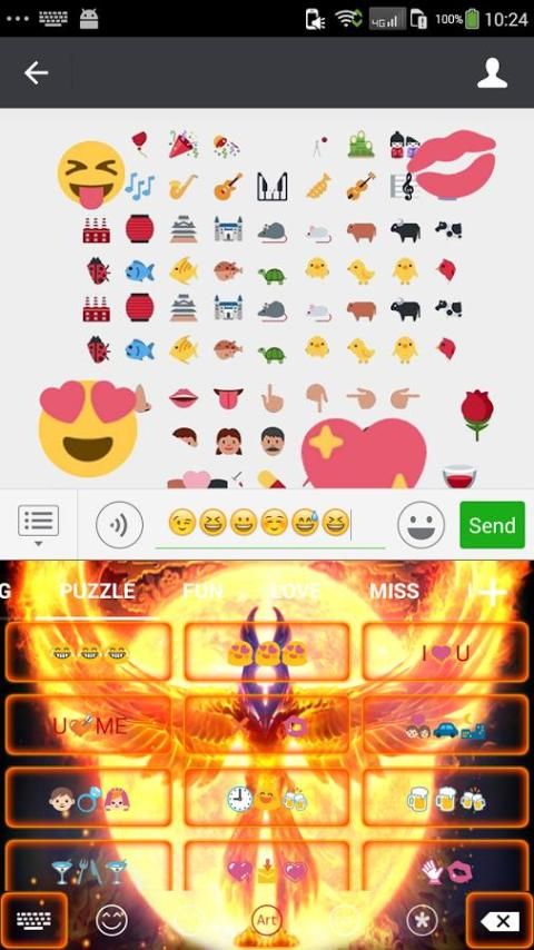 Phoenix Emoji Gif Eva keyboard theme let your phone become unique and beautiful. There will feel more funny and easier for you chat with your friend in the SMS, Email and other social network etc via Lovely Emoji-Gif Eva Keyboard.