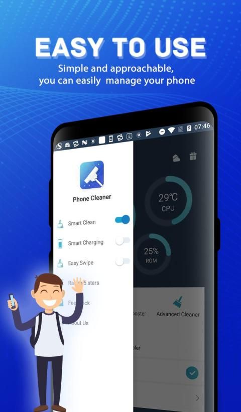 Phone Cleaner is right here do deal with the issues which slow down your android device performance! Helps you to clear junk files, forced kills apps running in the background, frees up RAM to improve your phone's speed.