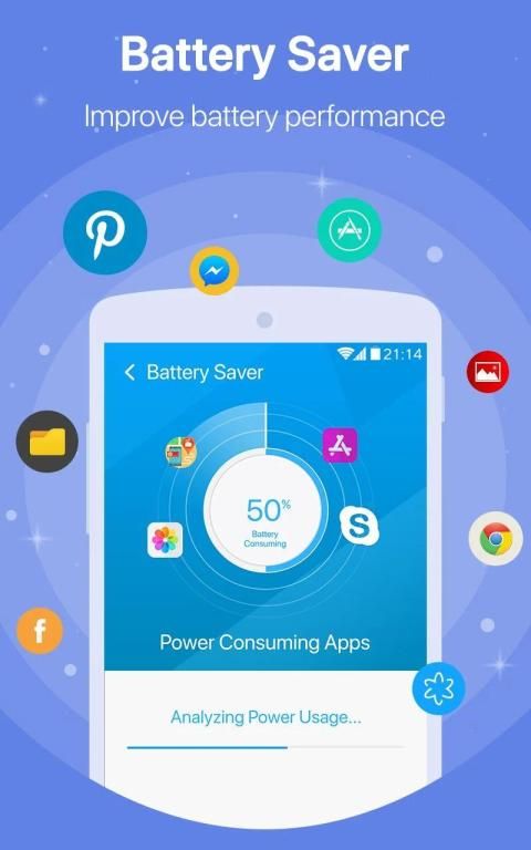 फोन क्लीनर बैटरी शक्ति को बचाने और चलने वाले ऐप्स को हाइबरनेट करके बैटरी जीवन का विस्तार करने में मदद करता है।