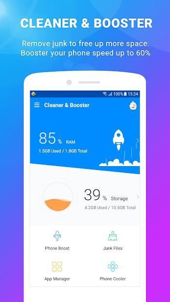 Features of the Cleaner & Booster: phone cooling, application management or phone acceleration, smart memory management are integrated. Cleaner and booster for android, phone booster speed up and cleaner. Storage space running out then clean storage free up storage space on phone.