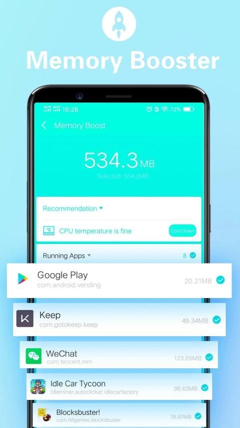 ★ Memory Boost: Small RAM space can make the phone bulky and slow. With Phone Master, we can free up memory only with a single click, making our phone lighter and smoother.