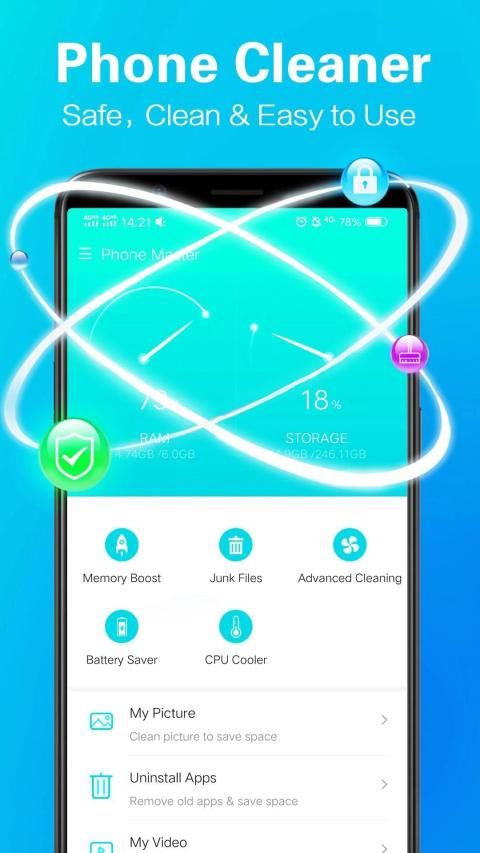 फोन मास्टर एक पेशेवर और 100% मुफ्त ऑल-इन-वन मोबाइल टूल है जो एंड्रॉइड मोबाइल फोन मेमोरी बूस्टर, जंक फाइल क्लीनर, बैटरी सेवर, सीपीयू कूलर, एंटीवायरस क्लीनर और गेम बूस्टर के रूप में काम कर सकता है। इस आसानी से उपयोग होने वाले फोन बूस्टर के साथ, हम केवल कुछ ही सेकंड में अपने Android उपकरणों के प्रदर्शन को बढ़ा सकते हैं।