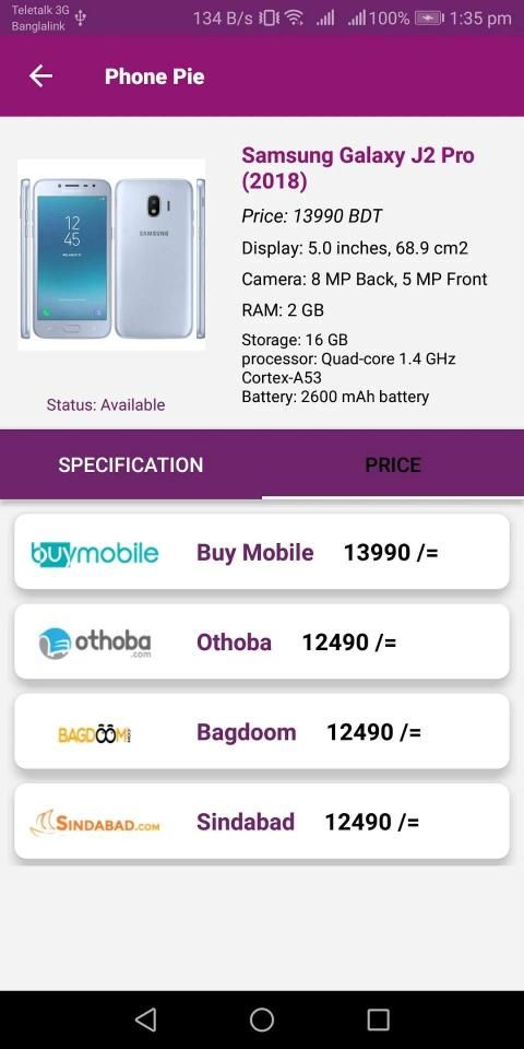 फोन पाई की मूल्य तुलना सेवाओं को एंड्रॉइड मोबाइल ऐप के माध्यम से भी एक्सेस किया जा सकता है।