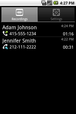 After finishing a call, you can listen to a playback using the simple, intuitive interface. Play, pause, fast-forward and rewind the playback has never been easier. Don't want the recording anymore? Delete it with a long press!