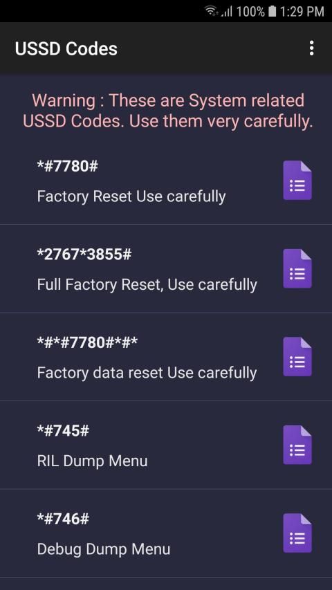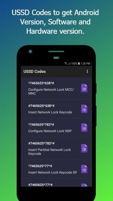 ऐप में यूएसएसडी कोड शामिल हैं जिनका उपयोग आप अपने फोन की छिपी हुई जानकारी जैसे आईएमईआई नंबर, फोन रेडिएशन लेवल, मॉडल, सॉफ्टवेयर वर्जन, एंड्रॉइड वर्जन, कॉल सेटिंग्स, नेटवर्क इंफो और कई अन्य चीजों के लिए कर सकते हैं।
