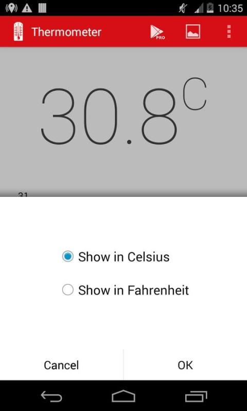 विज्ञापन टेलीफोन तापमान के मुक्त संस्करण की कोशिश करो - https://play.google.com/store/apps/details?id=com.triladroid.thermometer_pro