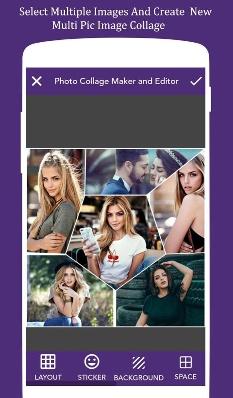 Photo Collage Editor is a powerful frame photo editor for you to create amazing collages using your photos, fun stickers, backgrounds, text with layout and frames.