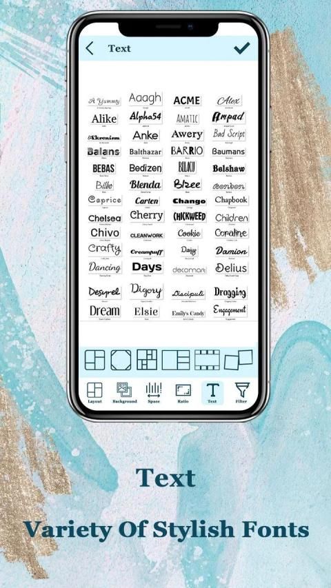 - से चुनने के लिए बहुत सारे मजेदार फोंट के साथ पाठ जोड़ें