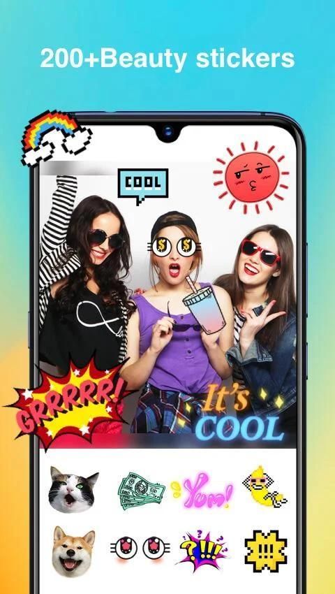 ● Stickers, tags, emojis, texts, and photo frames: tens of borders and frames