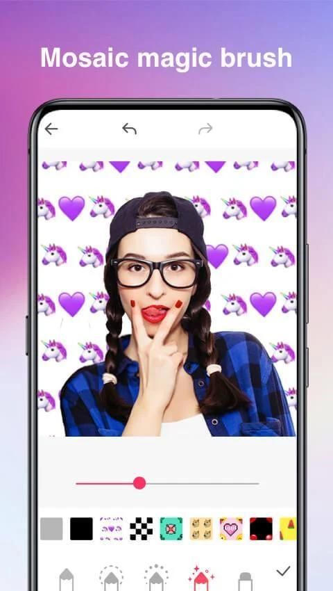 ★ अपने कोलाज पर इमोजी या सेल्फी मेकअप स्टिकर जोड़ें