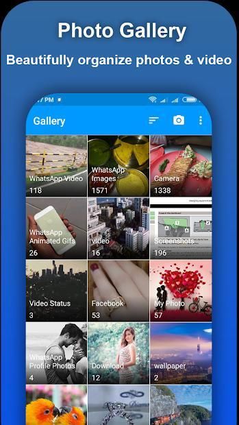 Arrange order of gallery items based on your selection. Picture Gallery collection for fast user interface.With Gallery - Photo Gallery & Video Gallery you will be able to display images to fill your entire screen. You can use the pinch-to-zoom gesture or zoom buttons to get more detailed view.