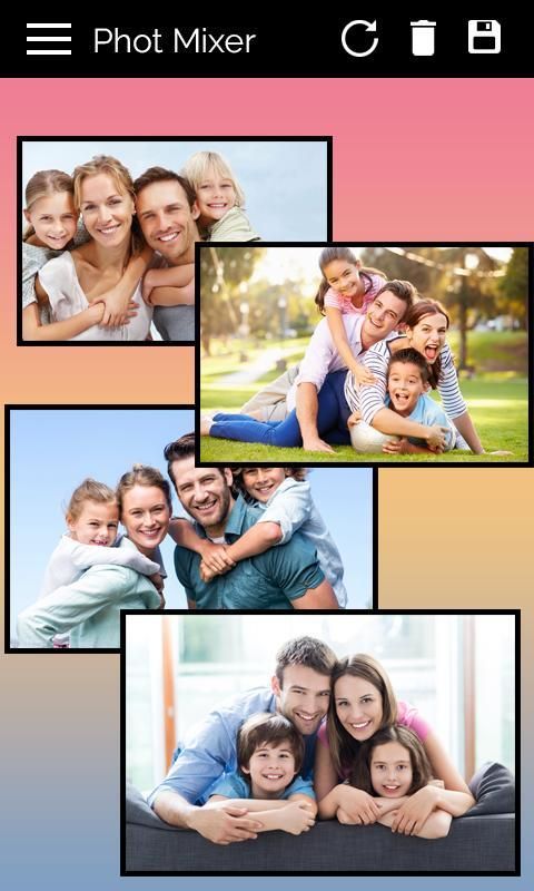 आप फोटो आकार और फोटो size.We की अपनी पसंद के साथ कई तस्वीरें जोड़ सकते हैं तस्वीर मिक्सर एप्लिकेशन अलग फोटो के संग्रह को दे दिया है