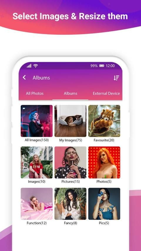 Photo Resizer और कंप्रेसर ऐप इंस्टॉल करें और अपने फ़ोन लाइब्रेरी में छवियों के आकार और गुणों का प्रबंधन करें।