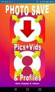 फोटो सहेजें महज एक क्लिक में अपने मोबाइल फोन गैलरी के लिए इंस्टाग्राम से फ़ोटो और वीडियो को बचाने के लिए सक्षम बनाता है। यह भी देख सकते हैं और पूर्ण प्रोफ़ाइल फ़ोटो, पूर्ण HD प्रोफ़ाइल फ़ोटो बचाने के लिए, और इसे सहेजने के लिए विकल्प है।