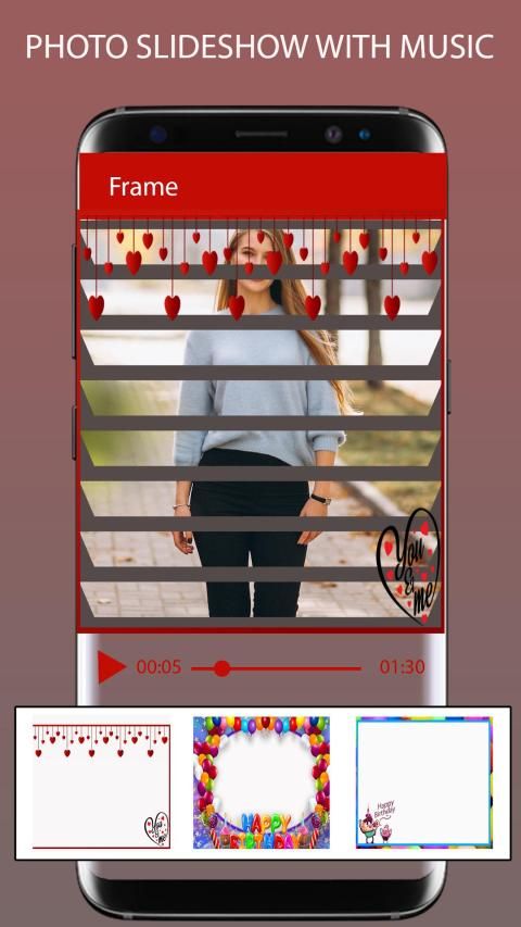 Make Slideshow Video from your memorial Images with Beautiful Theme or Frames and Movie Music.