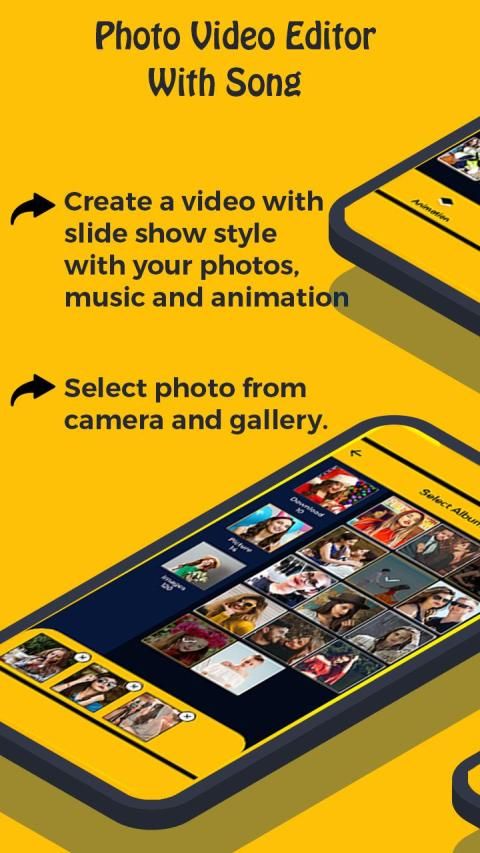 फोटो वीडियो एडिटर विद सॉन्ग लाखों लोगों द्वारा उपयोग किया जाता है। मजेदार एनिमेटेड वीडियो संपादक के साथ, आप तुरंत हर पल के चित्रों को भयानक दृश्य प्रभावों के साथ एक रचनात्मक वीडियो में बदल सकते हैं। आप