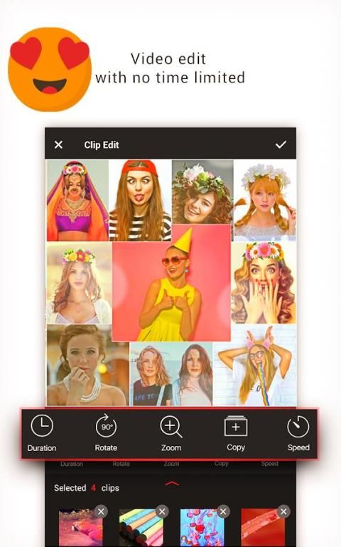 - ट्रिम और स्टोरीबोर्ड संपादन में वीडियो क्लिप विलय, प्रभाव Snapchat
