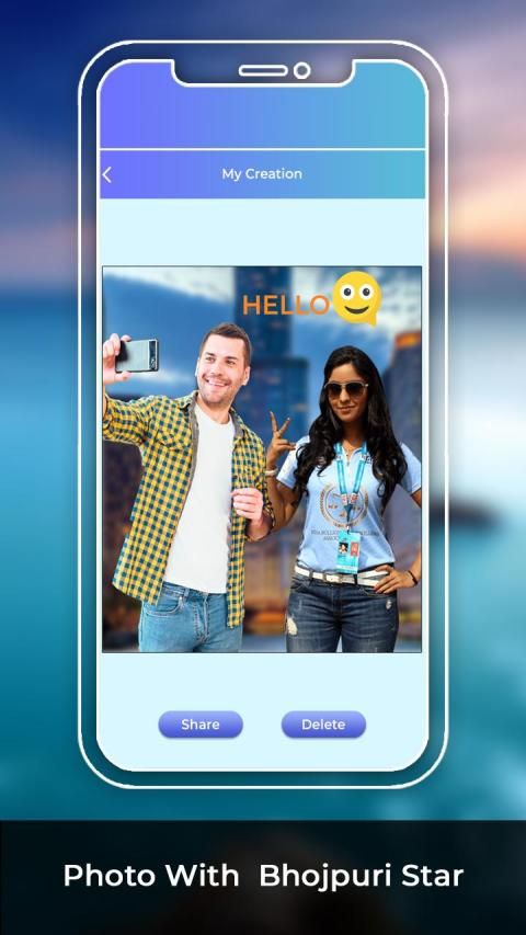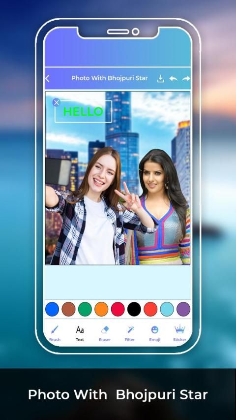 app with you can easily personalize your image with Bhojpuri Stars. Application has amazing collection of HD frames with Bhojpuri Stars with different photos. It is easy and simple to set your images with Bhojpuri Stars and app also provide all amazing tools like