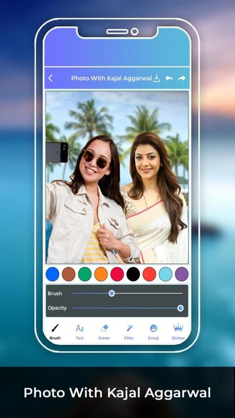 app with you can easily personalize your image with Kajal Aggarwal. Application has amazing collection of HD frames with Kajal Aggarwal with different photos. It is easy and simple to set your images with Kajal Aggarwal and app also provide all amazing tools like