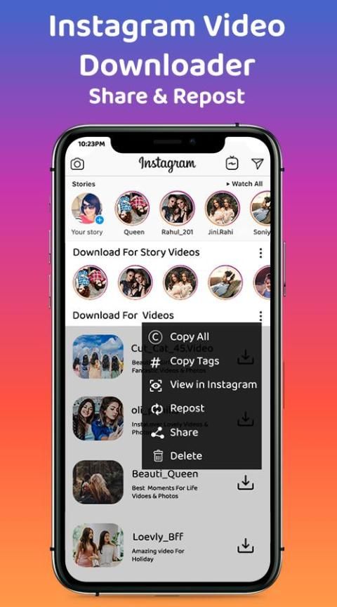 - Manage your downloaded Instagram videos and photos.