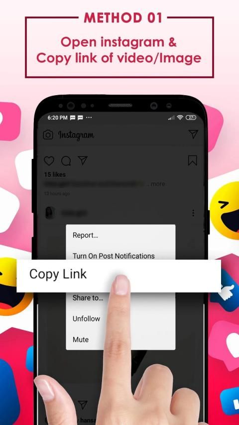 Step 1: Open Instagram and click on the "Copy Link" of the Instagram photo or video you are interested in.