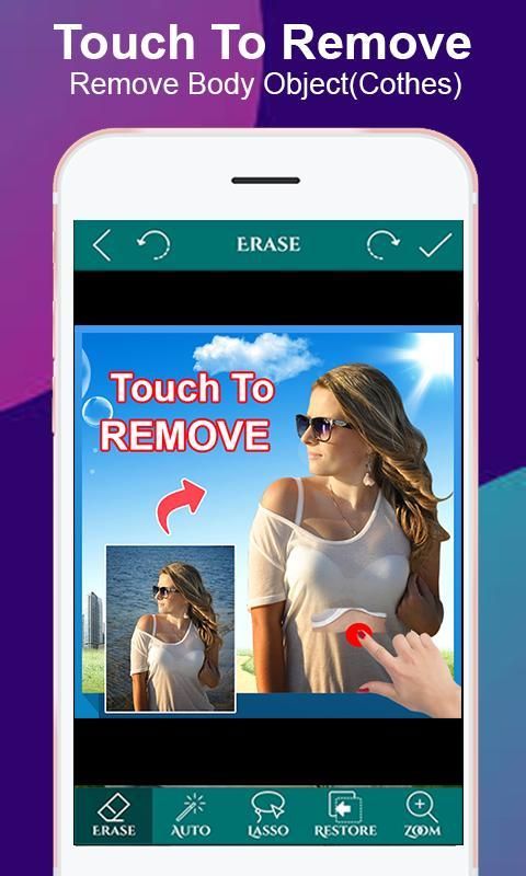 Photo object(cloth) remover - Photo BG Remover is a Simple object photo eraser and background changer gives you full control on cutting images with precision. It comes with lot of useful tools and features.Finger Touch erase the background area of the picture to cut and paste the cut out on any background of your choice from our collection or use your own from gallery.