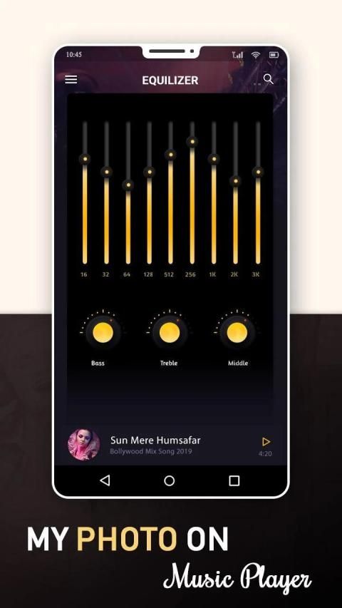हम माई फोटो म्यूजिक प्लेयर में इक्विलाइज़र जोड़ते हैं जो बेज़ेल, क्लासिकल म्यूजिक, म्यूजिक के साथ डांस, फ्लैट चेंज, हिप हॉप सॉन्ग, पॉप इफेक्ट, रॉक इफेक्ट को इक्वलाइज़र सेट करने में मदद करेगा। क्योंकि इक्वलाइज़र संगीत की दुनिया में सर्वश्रेष्ठ संगीत सुनने में मदद कर सकता है।