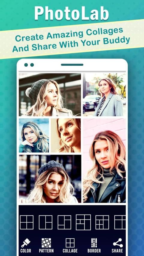 PhotoLab - Photo to Video Converter, GIF Maker app will help you to create beautiful Collage Photo Frames. Simply select collage style frame, you can chose a right collage frame from the gallery of frames and simply add different photos to it. You can save and share awesome collage photo frames with your family and friends over social media.