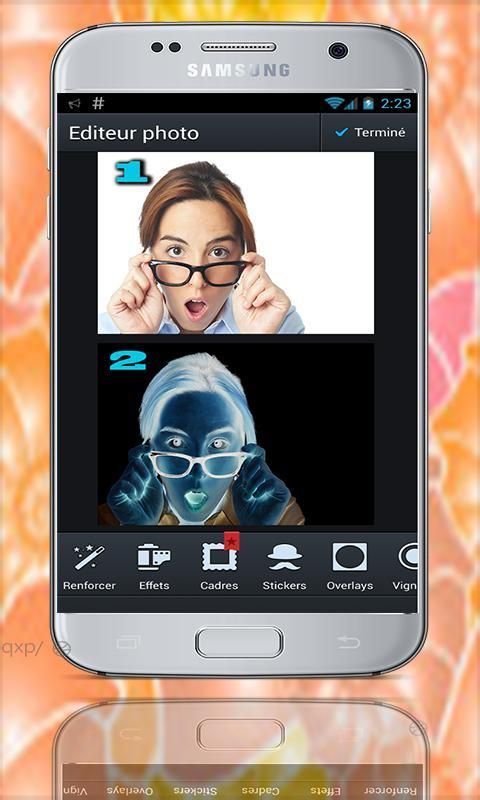 - आप सभी को यह करना है छवि का चयन करें या तो द्वारा Alcamra से उन्हें लेने के लिए समायोजित या फोन में छवि संपादक का चयन किया जा रहा है, तो प्रभाव के चयन में शुरू है कि आप अपने चित्र और Achtyaroadhavh सुंदर फ्रेम और छवि पर एक विशेष प्रकार का चयन करने के लिए की जरूरत है या अपनी तस्वीर डाल
