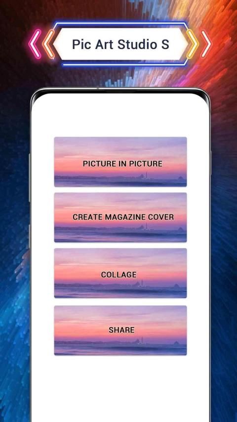 Pic Art Studio S is the professional photo editing photo studio app .This photo editing app can be used as a collage maker, photo editor, photo grid, photo frame, color splash effect photo editor and blur background photo editor for pictures. We can create stunning pic art using this Pic Art Studio S.Use the brushes to freely edit your photos with beautiful effects and apply a number of the world’s most fantastically designed filters, frames and borders. photo Art Studio S offers you the artistic writing tools you've got invariably needed. Once you have finished, save and share your photos to your favorite services.