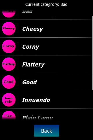 कई श्रेणियों से लगभग 1000 पिक-अप लाइनें शामिल हैं।
