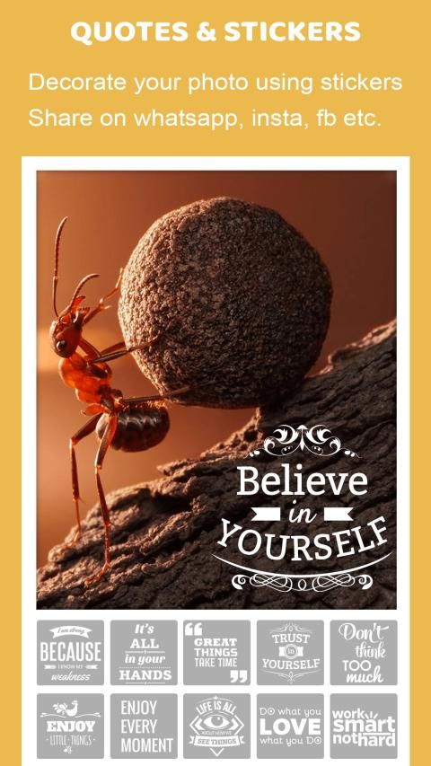 Decorate your photo by using stickers. 400+ stickers for free with different categories.