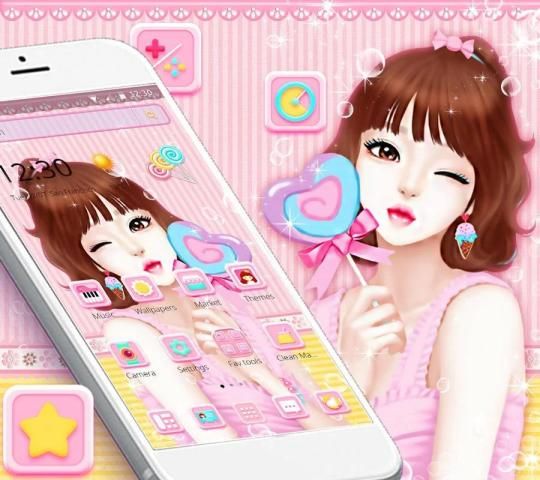 अपनी पसंदीदा पिंक क्यूट कैंडी गर्ल थीम चुनें।