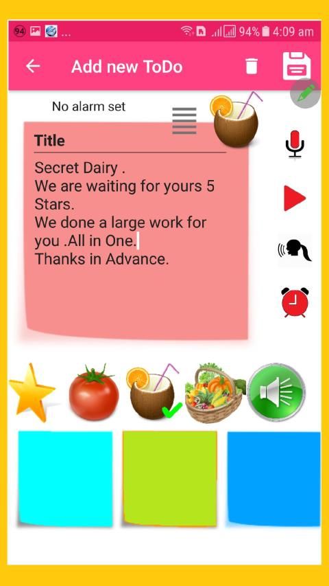 Pink Diary with Alarm Color Reminder Lazy Alarm App is a simple todo task reminder app for Android to just remind you everything at a specified time!