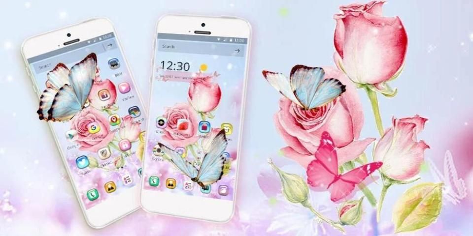 अपने फोन को सुंदर और रंगीन बनाने के लिए अब मुक्त गुलाब तितली विषय स्थापित करें!