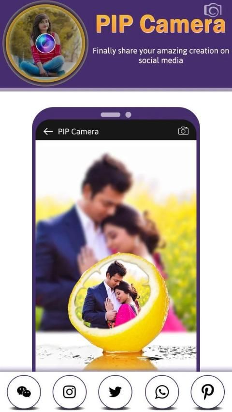 PIP Photo Editor allows you to combine blurred photos with photo in glass, hand, camera, board and many more handcrafted frames to create the perfect picture-in-picture effect.