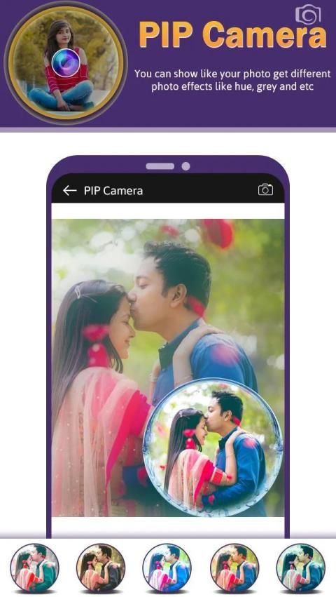 PIP Photo Editor आपको परफेक्ट पिक्चर-इन-पिक्चर इफ़ेक्ट बनाने के लिए ग्लास, हैंड, कैमरा, बोर्ड और कई और हैंडक्राफ्टेड फ्रेम में फोटो के साथ ब्लर फोटो को संयोजित करने की अनुमति देता है।