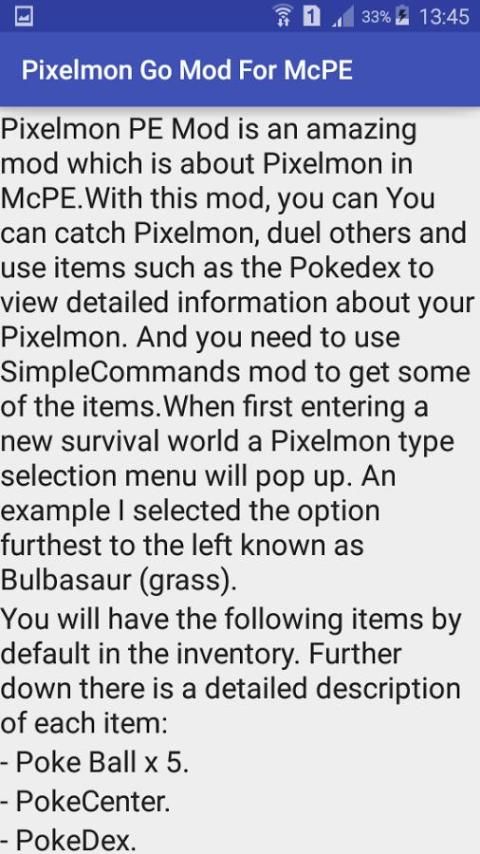 Find most popular android apps here! 20,000+ users downloaded Pixelmon Go Mod For MCPE latest version on 9Apps for free every week! This app was totally funny. This hot app was released on 2016-08-20. To read more information, you can go to 9Apps.