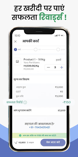खरीदें बीज ,फ़र्टिलाइज़र और फसल सुरक्षा प्रोडक्ट्स और बिल में अपनी भुगतान राशि देखें।