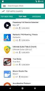 Find the top apps in all apps (not games) categories. Just select the category you are interested in and discover top apps in that category. You will able to see information about reviews, downloads and ratings of the app. You can also filter to see PAID or FREE apps in the results. You can also see top trending grossing and top new free and paid apps as well.